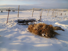 I piled the hay on one of the kid's black plastic toboggan, invisible under the pile.